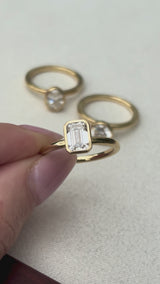 Ask about Everlasting 1.25ct TW Emerald Cut Lab-Grown Diamond Bezel Set Solitaire Engagement Ring in 18ct Yellow Gold