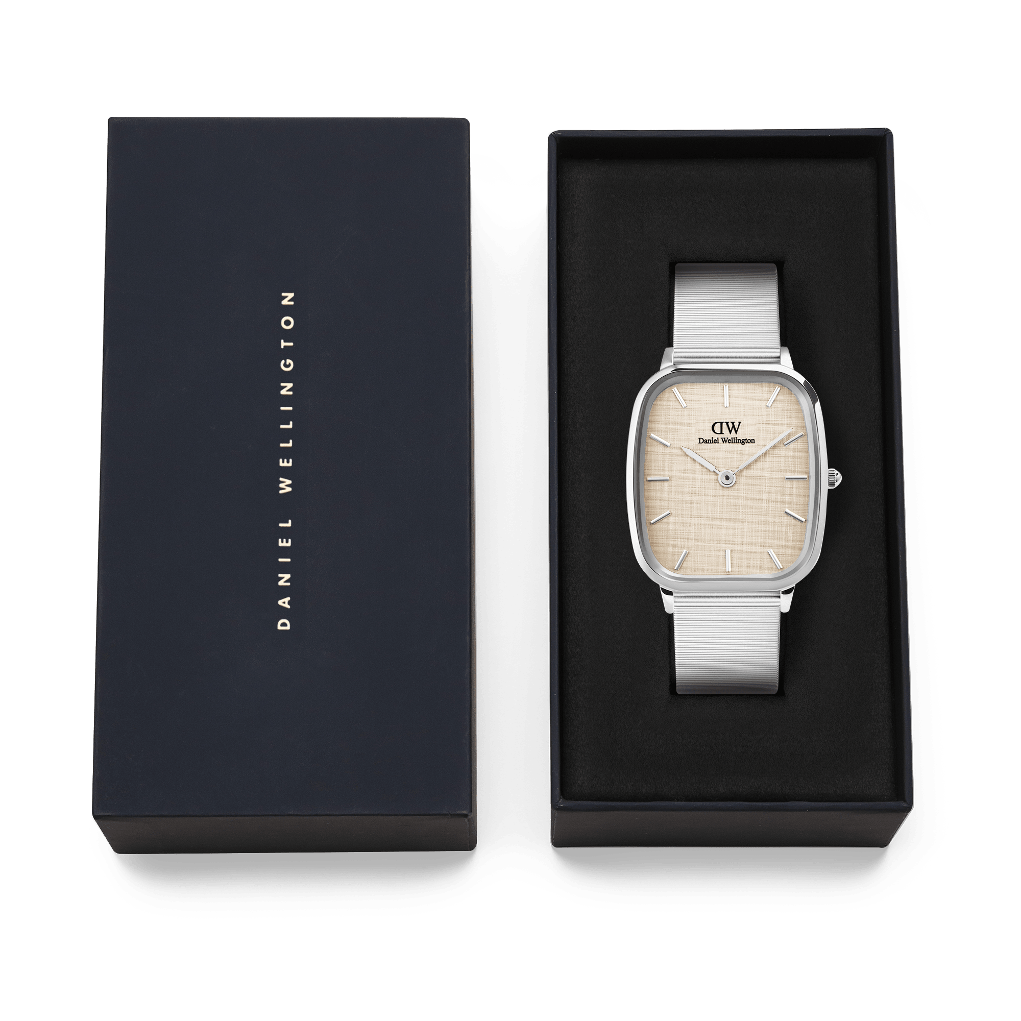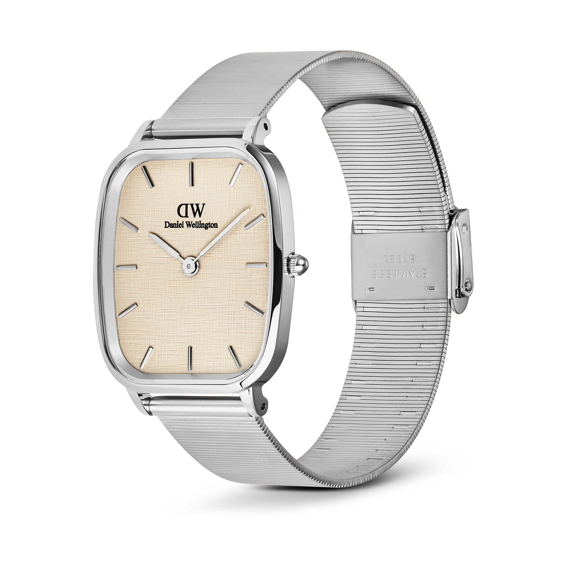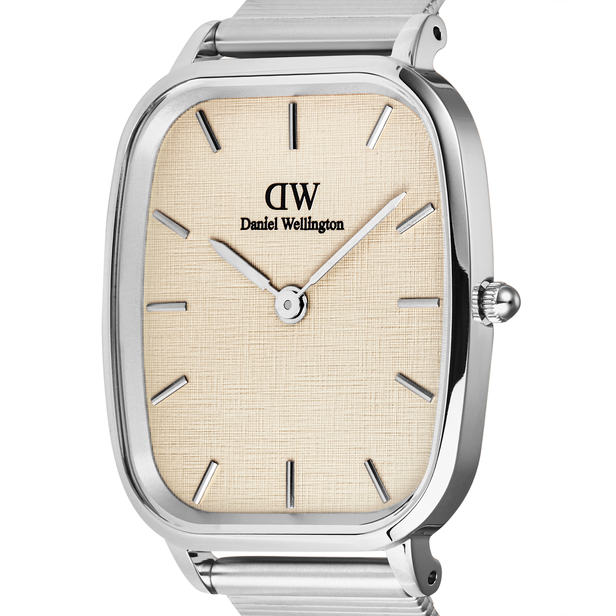 This brand-new watch shape features several vintage-inspired details. The cushion-shaped case evokes classic vintage men's watches. At the same time, the linen-embossed print on the dial enhances its nostalgic design, making it elegant and timeless and a perfect style staple for any occasion and any type of look.