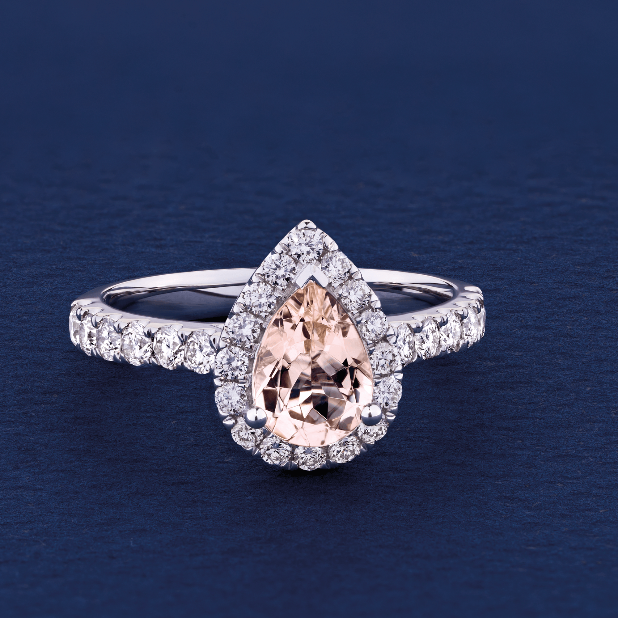 Ask about Bluebird™ Morganite & Diamond Pear Halo Ring in 9ct White Gold
