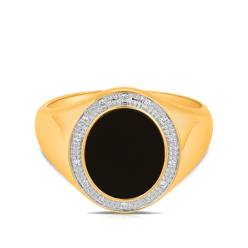 Ask about Onyx & Diamond Signet Ring in 9ct Yellow Gold