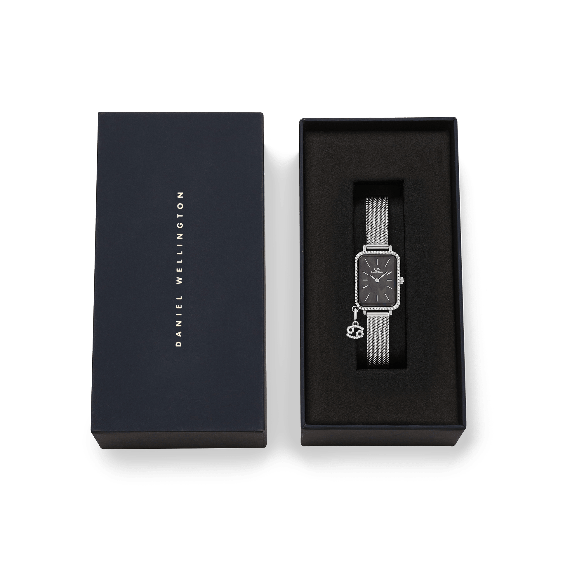 Ambitious Aries, loving Libra, poetic Pisces—add a piece of personality to your outfit with our Quadro Crystal Zodiac watch. Framed by crystals along the Lumine bezel, the real black mother of pearl dial brings a lustrous sparkle to your wrist. Choose your sign and embrace the elements that make you, you—or switch things up to signify another special moment or person: both the silver mesh strap and the crystal charm are interchangeable.
