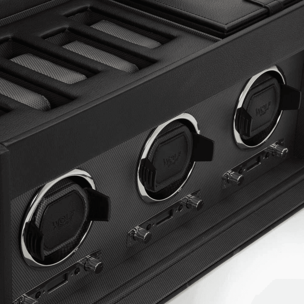 WOLF Viceroy Black Leather Triple Automatic Watch Winder with Storage - Wallace Bishop