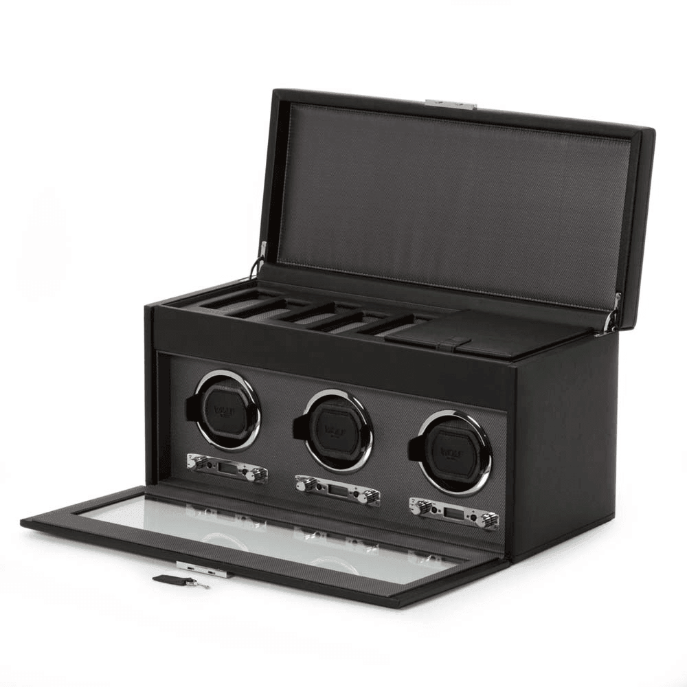 WOLF Viceroy Black Leather Triple Automatic Watch Winder with Storage - Wallace BishopWOLF Viceroy Black Leather Triple Automatic Watch Winder with Storage - Wallace BishopWOLF Viceroy Black Leather Triple Automatic Watch Winder with Storage - Wallace BishopWOLF Viceroy Black Leather Triple Automatic Watch Winder with Storage - Wallace Bishop